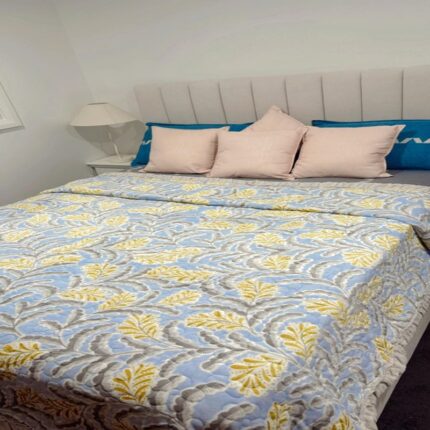 Light Blue and Yellow Floral Quilted Blanket